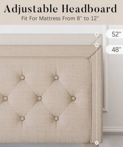 Queen Adjustable Height Platform Bed Frame with Beige Upholstered Headboard