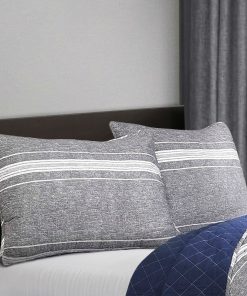 Pairing neutral hues of gray with a traditional stripe motif, this quilt set is an easy fit for just about any master suite or guest room. Crafted from 100% cotton, it offers a breathable design that can conveniently be maintained with a machine wash and tumble dry. When you feel like switching up your ensemble, simply reverse the coverlet for a navy quilted design that still pairs perfectly with the included shams.