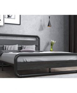 This Queen Heavy Duty Round Metal Frame Platform Bed with Black Wood Panel Headboard would be a great addition to your home. We made the whole bed with strong metal to make sure it can HOLD ANYTHING that could be in the bed. And we did not use normal head/footboard foot that normal bed did, which may hurt your floor. The special design of our headboard and footboard make the touch area between bed and floor bigger. So the bed could support more weight than other normal designed beds. More touch space could disperse the pressure that the bed gives to the floor, which will protect your floor better. Special noise free paddles everywhere to AVOID ANY NOISE. You now finally can have a strong but also quiet metal bed!
