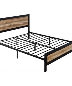 - Queen Industrial Metal Wood Rivet Platform Bed Frame w/ Headboard and Footboard