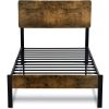 - Queen Industrial Rivet Platform Bed Frame with Headboard in Rustic Wood Finish