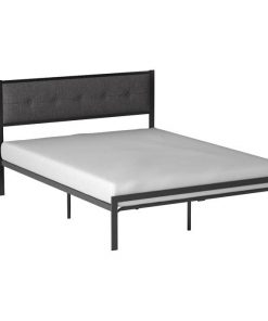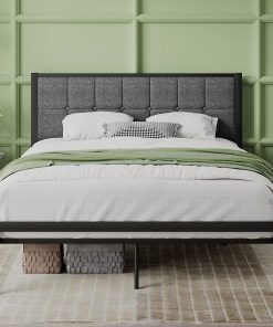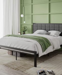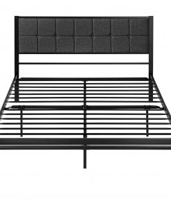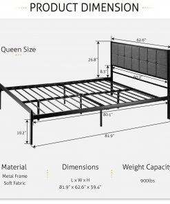 - Queen Metal Platform Bed Frame with Gray Button Tufted Upholstered Headboard