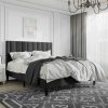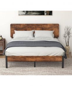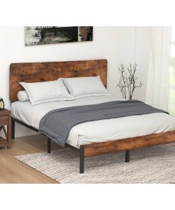 - Queen Modern Metal Platform Bed Frame with Rustic Wood Headboard and Footboard