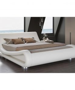 - Queen Modern White Upholstered Platform Bed Frame with Sleigh Curved Headboard