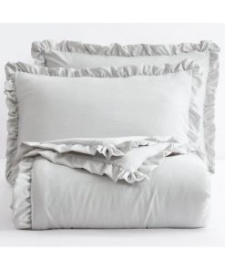 Transform your bedroom in a sophisticated and luxurious manner with this Queen Oversized Grey Stone Washed Ruffled Edge Microfiber Comforter Set. An attractive ruffled edge trim with an elegant yet simple presentation that makes you feel right at home. Fashionably providing everyday comfort. Lightweight, high loft comforter with adequate warmth for year-round use. The comforter is made of 100% microfiber polyester, giving a super soft smooth, and cozy feel. The fabric is stone-washed which creates a natural attractive crinkled fabric effect to enhance the aesthetics of the comforter.