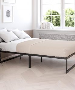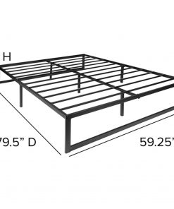 Queen Size 14 Inch High Heavy Duty Black Metal Platform Bed Frame