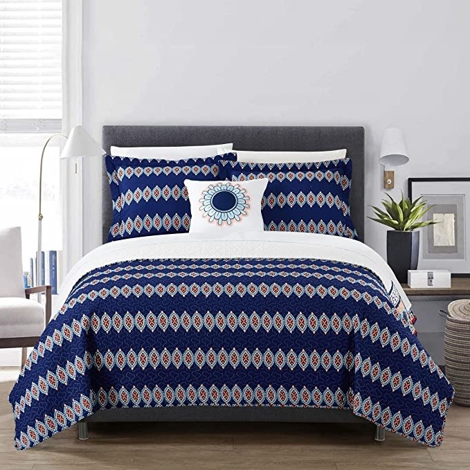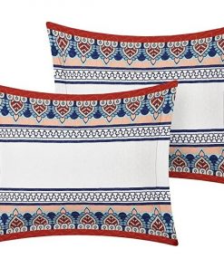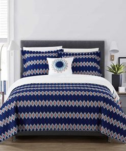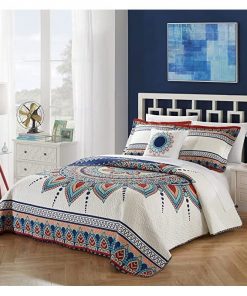 Relax in sift luxury with this 4 Piece 100% Cotton Blue White Boho Geometric Reversible Quilt Set – Queen. This quilt cover is made with premium quality fine combed super soft prewashed 100% cotton 200 thread count. This quilt is filled with cotton (80%) and synthetic down alternative filling (20%). The reversible quilt cover is perfect for spring, summer, or fall nights and southern states all year round. The set is made with strict quality control and comes with a queen size quilt cover, 2 shams and a decorative pillow.