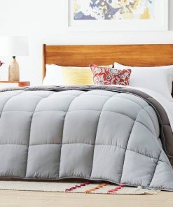 Perfect for curling up and staying warm this Queen Size All Seasons Plush Light/Dark Grey Reversible Polyester Down Alternative Comforter provides everything and more all year round! This piece features baffle box stitch construction for a classic look that doubles as a handy way to keep the filling from sliding and lends this piece a breathable touch. This mid weight 275 gsm comforter has 4 corner tabs to keep your duvet in place and since it’s machine washable, a quick cycle is all it takes to have this piece looking its best.