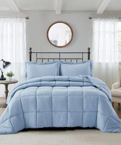 Queen Size Blue 3 Piece Microfiber Reversible Comforter Set