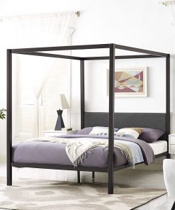 Canopy bed frame – a mattress foundation that elevates your decor, the clean Lines and sleek silhouette of this Canopy platform bed Bring eye-catching appeal to the master Bedroom and guest room alike