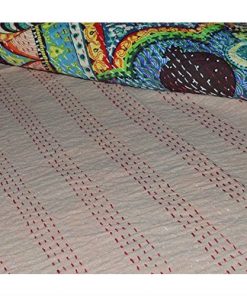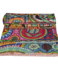 A beautiful creation to give your home a traditional yet authentic colorful look with this Queen size Colorful Floral Patchwork Quilt Blanket 100-percent Cotton which can also be used as handmade tropical bedspread bedding. This piece is of art is completely hand stitched by Women artisan in Rajasthan, India. The entire quilt is hand embroidered with end number of straight running stitches to create a unique product, one of it’s kind. These quilts are famed and admired due to their Kantha work. They have different beautiful warm and charming colors, designs and patterns on either side which gives a distinct look.
