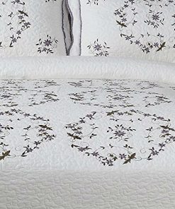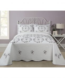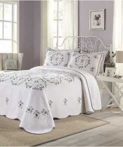 This Queen size Cotton Bedspread with Scalloped Edges and Floral Print Embroidery in White is a generously sized bedspreads with 100-percent soft cotton with floral print and embroidery, quilted 200 grams cotton batting with all over vermicelli quilting. Shams are sold separately.