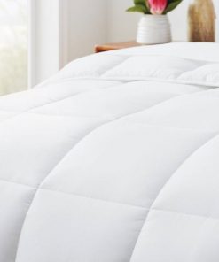 Perfect for curling up and staying warm this Queen Size All Seasons Plush White Polyester Down Alternative Comforter provides everything and more all year round! This piece features baffle box stitch construction for a classic look that doubles as a handy way to keep the filling from sliding and lends this piece a breathable touch. This mid weight 275 gsm comforter has 4 corner tabs to keep your duvet in place and since it’s machine washable, a quick cycle is all it takes to have this piece looking its best.