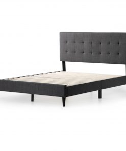 The Queen size Dark Gray Upholstered Tufted Platform Bed Frame features mid-century design, linen-like fabric, and sturdy support for a mattress. Durable and classy legs finish the design for a versatile look that will go well with most styles and preferences. The Queen size Dark Gray Upholstered Buttonless Tufted Platform Bed Frame eliminates the need for a box spring, and the easy assembly only requires a Phillips-Head screwdriver and the included Allen key. Fits any standard queen size mattress.