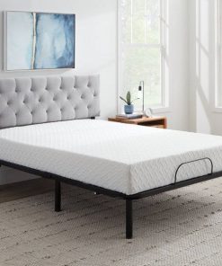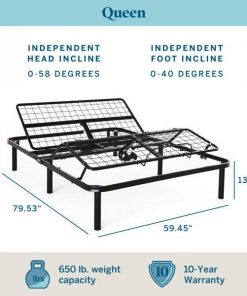 This Adjustable Full Electric Steel Bed Base with Remote in Queen Size provides a better way to sleep. It’s now easier than ever to read, watch TV, or relax in bed. You’ll love modifying your sleep experience with the head and foot-up positions controlled by a wired remote. This adjustable bed base fits well with most memory foam mattresses and bed frames, making any bed transition seamless. Added health benefits include reduced sleep apnea, acid reflux, and snoring. Comfort awaits. Mattress is NOT included.