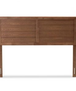 This Queen size Farmhouse Headboard in Rustic Brown Walnut Wood Finish would be a great addition to your home. Constructed from solid rubberwood with MDF ash veneer, Walnut brown finish, Upper back features 6 predrilled holes 2.50″ apart from one another for 5 different height adjustment options, Made in Malaysia, Assembly required, Slat design.