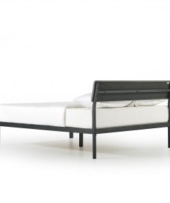 - Simple modern design with a sleek metal frame and soft fabric headboard in grey