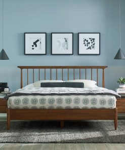 While the design looks lightweight, the Mid Century Platform Bed is amazingly sturdy thanks to its solid eucalyptus hardwood and solid pine wood construction. Details on the headboard posts are eye-catching without detracting from the organic simplicity and levity of the mid-century modern design. In the rear of the headboard, a metal angle provides a secure anchor for the hardwood spindles. Designed for online sales, our beds will ship quickly in durable packaging with user-friendly assembly instructions.