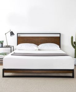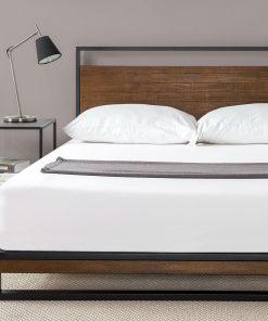 This Queen size Metal Wood Platform Bed Frame with Headboard will instantly update any bedroom. With the cherry finished pine wood headboard, sleek metal structure, and wood slats, this platform bed provides great support for your memory foam, latex, or spring mattress while looking great in your bedroom. Use with or without a box spring to personalize your mattress Height, mattress sold separately.