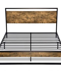 - Queen size Metal Wood Platform Bed Frame with Industrial Headboard