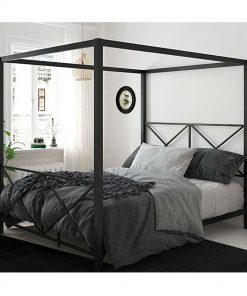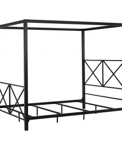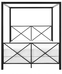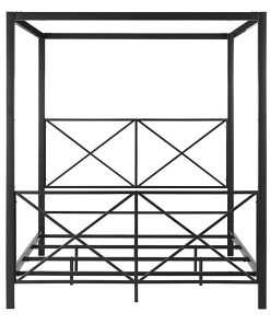 Queen size Modern Black Metal Four-Poster Canopy Bed Frame
