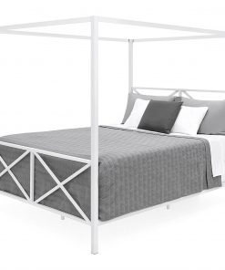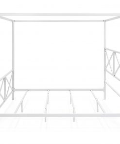 Accentuate your bedroom with a metal bed frame sure to add to your nightly excitement for a restful slumber. This Queen size Modern Canopy Bed Frame in White Metal Finish has a 4-slat support system with legs to guarantee exceptional support. With sturdy top rails, you can drape curtains around the border and fall into a peaceful escape. This frame takes bedroom decor to a whole new level.