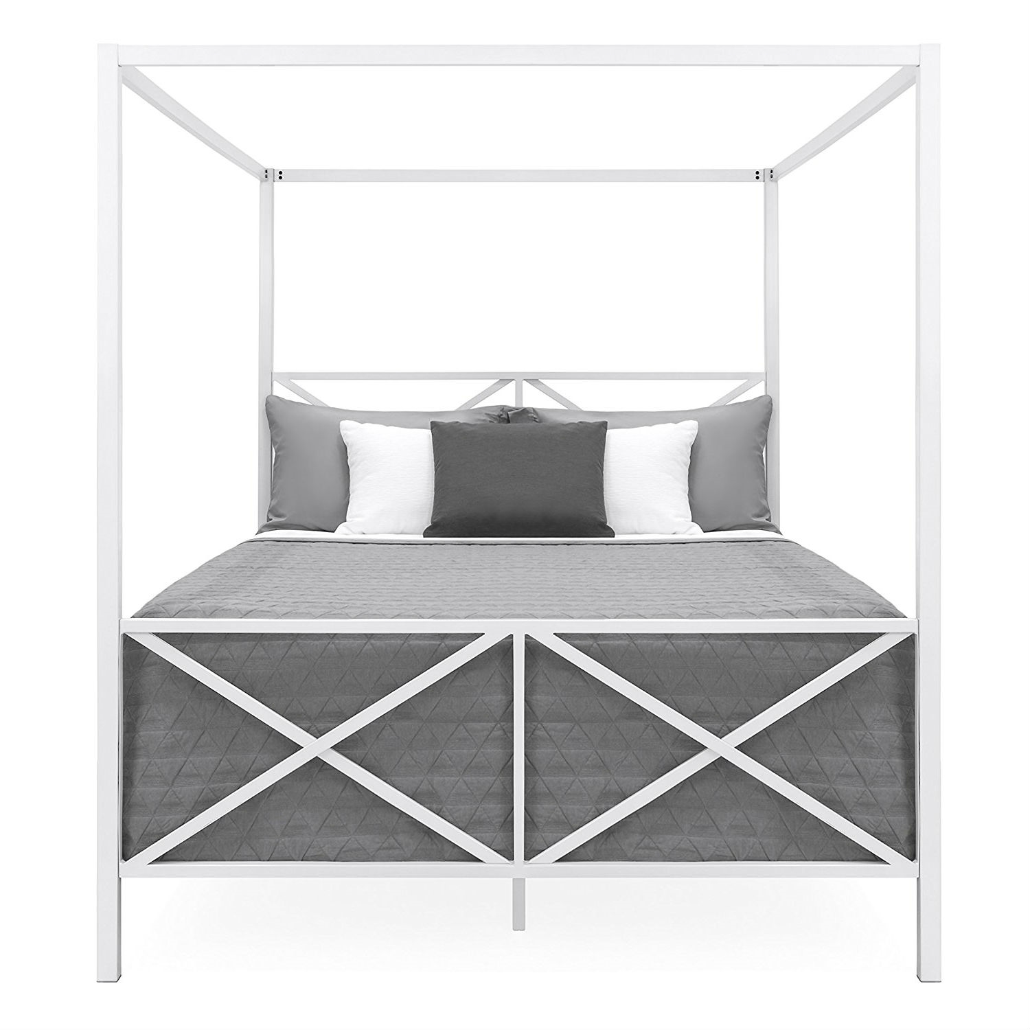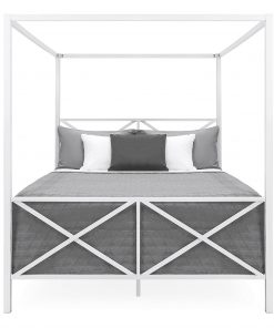 Queen size Modern Canopy Bed Frame in White Metal Finish