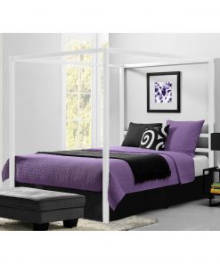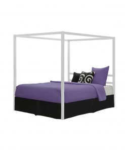 - Queen size Modern White Metal Canopy Bed – No Box-Springs Required