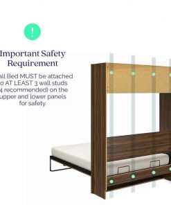 - Safe installation REQUIRES Wall bed attached to at least 3 wall studs (4 recommended) on upper and lower panels. Professional assembly and installation strongly recommended.