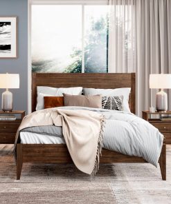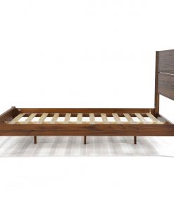 Bring the lightweight, organic feel of mid-century modern design to your bedroom with Queen Size Rustic Walnut Mid Century Slatted Platform Bed. It was designed in-house adhering to the standards of simplicity and functionality characteristic of the great architects of the post-World War II period. The simple details on the headboard and legs of this bed won’t stand out at first, but will complement many modern or contemporary design styles; and a closer look will reveal an honestly high-quality finish.