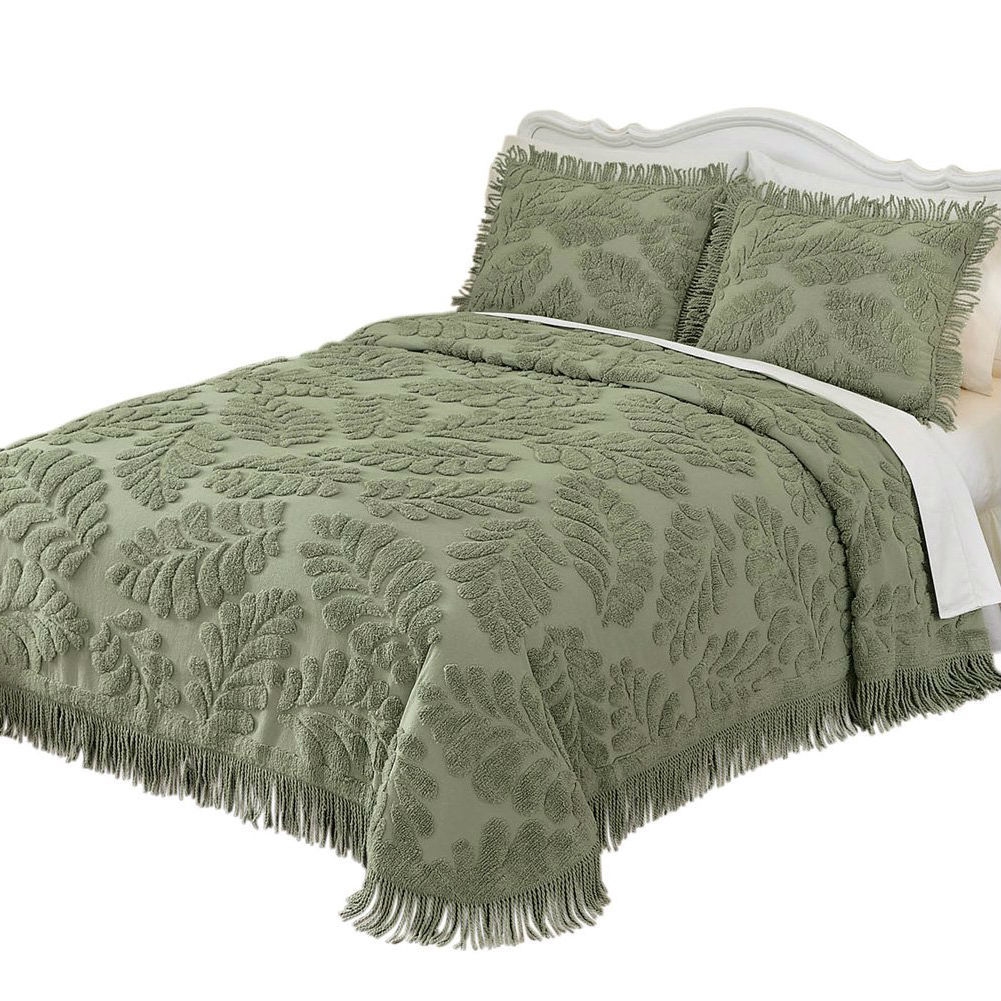Queen size Sage Green Luxurious Chenille Bedspread in 100-percent Cotton