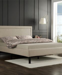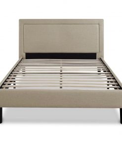 • Queen size Taupe Upholstered Platform Bed with Headboard