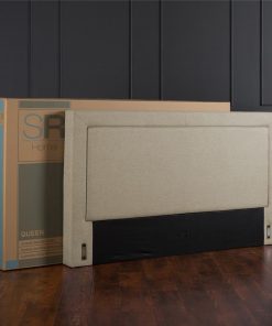 This Queen size Taupe Upholstered Platform Bed with Headboard will transform your bedroom. It ships in one carton with the frame, legs and wooden slats conveniently located in the zippered compartment in the back of the headboard for easy assembly. This classic upholstered platform bed features a detailed headboard and low profile footboard style frame, with wood slats and exposed feet for support. The taupe detailed upholstery adds softness and provides a classic framework for your mattress.