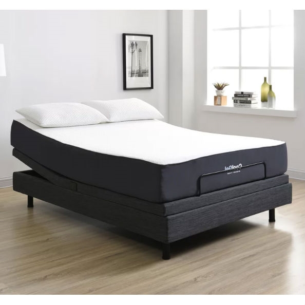 Transform your bedroom into the most used room in the house. This Queen size Wall-Hugger Adjustable Bed Base with Wireless Remote is made with quality fabric, foam, and a black matte powder-coated steel frame. Enjoy lifestyle benefits including watching TV, reading, working on a laptop and more. Plus, get the added benefit of taking the pressure off your back when sleeping elevated and not completely flat. Whisper quiet base can be used in flat, lounge, TV/PC position, zero-gravity, and can be programmed to memorize your favorite position. And unwind with 3-speed head and foot massagers. The possibilities are endless.