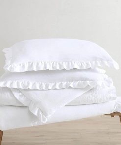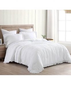 Transform your bedroom in a sophisticated and luxurious manner with this Queen Size White Stone Washed Ruffled Edge Microfiber Comforter Set. An attractive ruffled edge trim with an elegant yet simple presentation that makes you feel right at home. Fashionably providing everyday comfort. Lightweight, high loft comforter with adequate warmth for year-round use. The comforter is made of 100% microfiber polyester, giving a super soft smooth, and cozy feel. The fabric is stone-washed which creates a natural attractive crinkled fabric effect to enhance the aesthetics of the comforter.