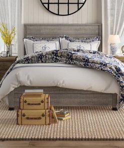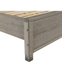 Create the perfect centerpiece for your rustic or country bedroom with this Queen Solid Wooden Platform Bed Frame with Headboard in Grey Wood Finish. The platform bed includes the headboard, footboard, side rails, and a 12-piece slat support system, so you don’t even need a box spring! The bed is made of solid pine wood with your choice of available distressed, rustic finish. The slat-style headboard and footboard create a simple, versatile look. Steel-wrapped accents on the feet complete the farmhouse-inspired design. Choose from available sizes to fit your bedroom.