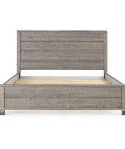 Create the perfect centerpiece for your rustic or country bedroom with this Queen Solid Wooden Platform Bed Frame with Headboard in Grey Wood Finish. The platform bed includes the headboard, footboard, side rails, and a 12-piece slat support system, so you don’t even need a box spring! The bed is made of solid pine wood with your choice of available distressed, rustic finish. The slat-style headboard and footboard create a simple, versatile look. Steel-wrapped accents on the feet complete the farmhouse-inspired design. Choose from available sizes to fit your bedroom.