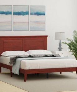 This Queen Size Retro Solid Oak Wooden Platform Bed in Cherry with prominent headboard is a must have for any bedroom! Inset panels and retro molding that adds refined elegance to any bedroom or guest room. It is crafted from solid oak, a naturally hard and durable wood. Platform bed sits on straight and slightly tapered legs that raise this bed almost 8 inches off the floor. This system of slats eliminates the need for a box spring and works best with any standard mattress (recommended 10 inches of thickness). Assembly is required.