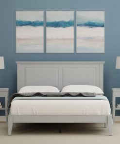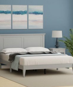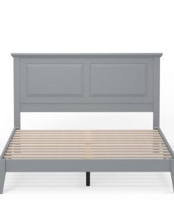 This Queen Size Retro Solid Oak Wooden Platform Bed in Grey with prominent headboard is a must have for any bedroom! Inset panels and retro molding that adds refined elegance to any bedroom or guest room. It is crafted from solid oak, a naturally hard and durable wood. Platform bed sits on straight and slightly tapered legs that raise this bed almost 8 inches off the floor. This system of slats eliminates the need for a box spring and works best with any standard mattress (recommended 10 inches of thickness). Assembly is required.