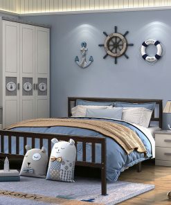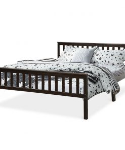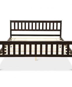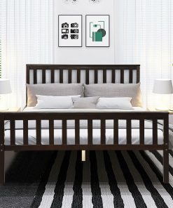 Queen Wood Platform Bed Frame with Headboard and Footboard in Espresso 100% solid pine for stable and durable bed frame Two support legs in the middle of the bed can better distribute weight 6 sturdy support legs and 8 slats for high bearing capacity of 250 lbs Large storage space under the bed frame for tidy home All the accessories are tightly connected and don’t make any noise The headboard and footboard are included to provide a fixed space for the mattress Suitable for two adults to sleep comfortably Wood slats can enhance the lifetime of the mattress A complete mattress support system without the need for a box spring Modern and concise design makes it a perfect decoration for any room Provide a cozy sleeping environment in bedroom, guest room or hotel Easy to assemble with instructions and all accessories are included. Easy to clean and maintain with just a duster cloth Color: Espresso Frame: Pine Slats:Plywood Package included: 1 x Queen size bed frame 1 x Instruction