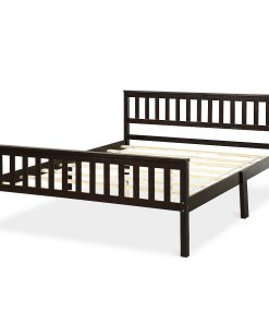 Queen Wood Platform Bed Frame with Headboard and Footboard in Espresso 100% solid pine for stable and durable bed frame Two support legs in the middle of the bed can better distribute weight 6 sturdy support legs and 8 slats for high bearing capacity of 250 lbs Large storage space under the bed frame for tidy home All the accessories are tightly connected and don’t make any noise The headboard and footboard are included to provide a fixed space for the mattress Suitable for two adults to sleep comfortably Wood slats can enhance the lifetime of the mattress A complete mattress support system without the need for a box spring Modern and concise design makes it a perfect decoration for any room Provide a cozy sleeping environment in bedroom, guest room or hotel Easy to assemble with instructions and all accessories are included. Easy to clean and maintain with just a duster cloth Color: Espresso Frame: Pine Slats:Plywood Package included: 1 x Queen size bed frame 1 x Instruction