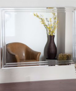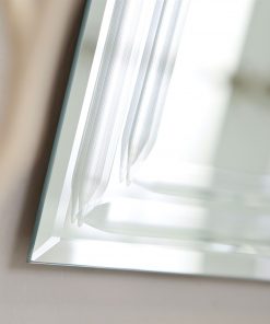 This Rectangular 31.5-inch Bathroom Vanity Wall Mirror with Contemporary Triple-Bevel Design brings contemporary sophistication to your home. This stunning rectangular mirror is sure to add elegance to any wall in your home. Constructed of metal and strong 3/16 glass, it features V-grooved cut designs around the border that add beauty to the mirror. Mounting hardware is included with the mirror. Weighs 14 pounds. Dimensions: 31.5L x 23.5W x .5D inches.