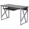 Rectangular Writing Table Office Desk with Clear Tempered Glass Surface