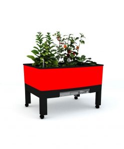 Got plants? Grow food, anywhere with the flashy Red Mobile 33.5 in x 24.25 in x 23 in Self Watering Raised Garden on Wheels. Grow high-nutrient micro-greens with the perfectly sized footprint to fit a standard 10 x 20 tray. Grow your own organic salads, greens and herbs indoors through the winter. Get a head start by starting your seeds early. Or, once the summer arrives bring the garden outdoors for natural light. Self-watering tub, once your garden is established with deep roots, you can water your garden with the self-watering feature this brings water to where the plants need it most – at the roots, and it allows you to not have to water every day.