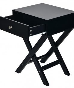 The multifunctional Retro Black X-Shape 1 Drawer Nightstand Coffee Table is suitable for various rooms and helps to keep your living space tidy. The wide top is perfect for your to lamps, cups, potted plants, photo frames, or decorations. Comes with a drawer for storing your private items. Made of thick MDF board and sprayed with waterproof paint, this bedside table is stable and durable enough to support a long service life. Besides, supported by a heavy duty X-shaped base, there is no wobbling once the nightstand is assembled and it can support weights up to 66 lbs.