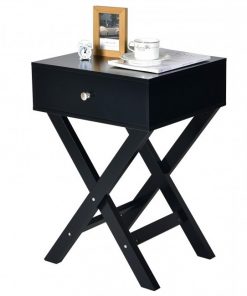 The multifunctional Retro Black X-Shape 1 Drawer Nightstand Coffee Table is suitable for various rooms and helps to keep your living space tidy. The wide top is perfect for your to lamps, cups, potted plants, photo frames, or decorations. Comes with a drawer for storing your private items. Made of thick MDF board and sprayed with waterproof paint, this bedside table is stable and durable enough to support a long service life. Besides, supported by a heavy duty X-shaped base, there is no wobbling once the nightstand is assembled and it can support weights up to 66 lbs.