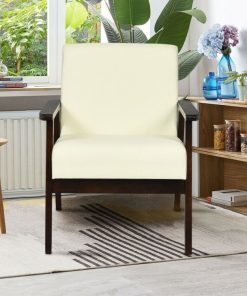 Sit back and relax in this Retro Linen Wide Accent Chair w/ Espresso Rubber Wood Frame – Off White. Ergonomic armrest is designed for relaxing your arm and hands. Wide back design can support your spine nicely and distribute pressure evenly when you lean on it and the chair is equipped with antiskid foot pads to prevent the floor from being scratched. Made of natural rubber wood frame, this accent chair is firm and wear-resistant for long service time. It has no burr and no smell for safe use. Thanks to premium material and sturdy structure, it can withstand up to 330 lbs. without wobbling. The seat and back are filled with high-density sponge, which is soft enough for you to enjoy yourself and relax your body after tired work. Besides, fine linen cover features gentle texture and friendly touch, providing you with extra comfortable feeling.