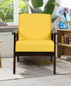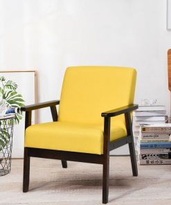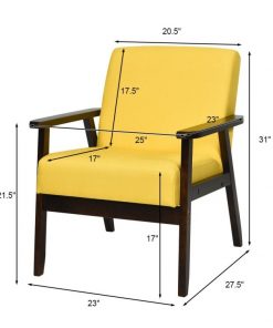 Sit back and relax in this Retro Linen Wide Accent Chair w/ Espresso Rubber Wood Frame – Yellow. Ergonomic armrest is designed for relaxing your arm and hands. Wide back design can support your spine nicely and distribute pressure evenly when you lean on it and the chair is equipped with antiskid foot pads to prevent the floor from being scratched. Made of natural rubber wood frame, this accent chair is firm and wear-resistant for long service time. It has no burr and no smell for safe use. Thanks to premium material and sturdy structure, it can withstand up to 330 lbs. without wobbling. The seat and back are filled with high-density sponge, which is soft enough for you to enjoy yourself and relax your body after tired work. Besides, fine linen cover features gentle texture and friendly touch, providing you with extra comfortable feeling.