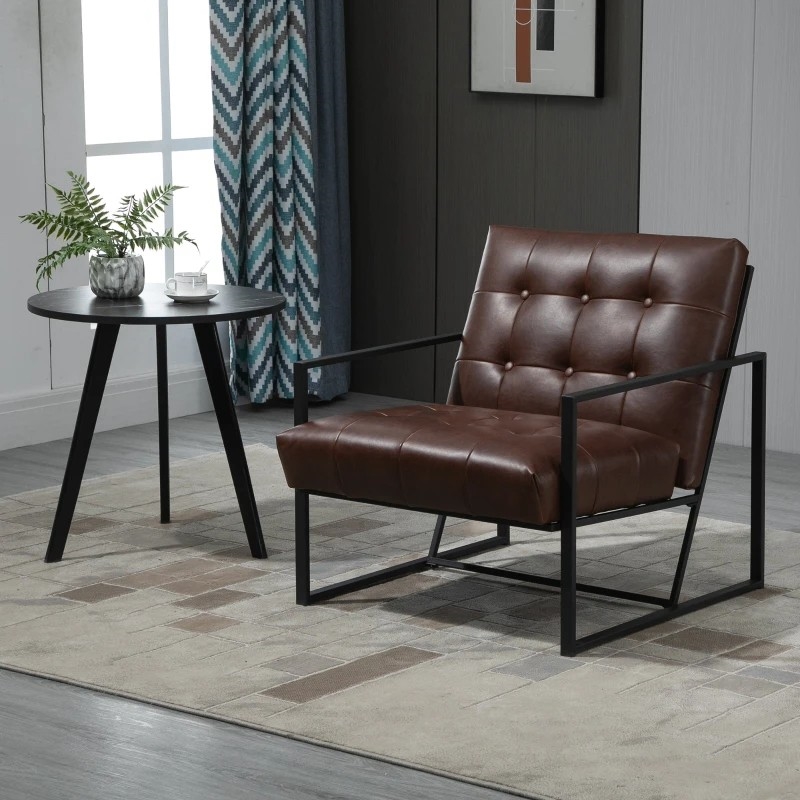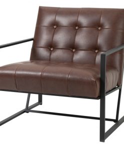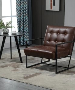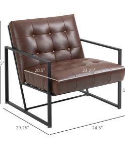 Retro Tufted Faux Leather Metal Frame Accent Chair – Brown