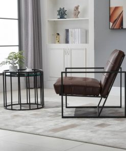 As a combination of industrial style and mid-century modern design, this Retro Tufted Faux Leather Metal Frame Accent Chair – Brown features a geometric steel frame, faux leather upholstery, and a tufted button. The inclined backrest and thickly padded cushion give you full support and a comfortable sitting experience. This modern accent chair matches your living room, bedroom, or home office.